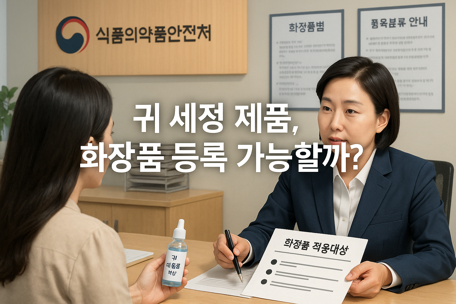 귀에 묽은 액상을 넣어 귀지를 세정하는 제품들이 최근 다양한 형태로 출시되고 있습니다. 증류수에 아세트익시드 성분을 포함한 제품도 그 중 하나인데요. 겉보기에는 세정 목적의 일반 제품처럼 보이지만, 화장품 등록이 가능한지 여부는 단순히 ‘세척’이라는 기능만으로 판단되지 않습니다.