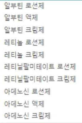 - 액체, 로션, 크림은 각각 동일한 제형으로 분류됩니다. 이는 소비자가 제품을 사용할 때의 사용감을 기준으로 분류한 것입니다.