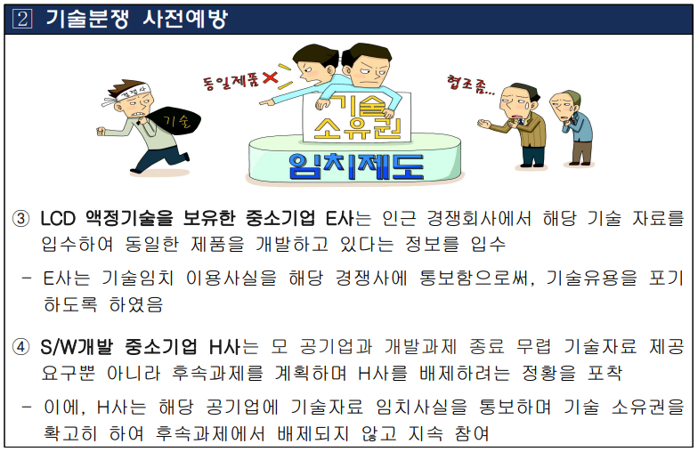 중소기업 등의 기술보호에서 나아가, 대기업의 입장에서는 거래관계에 있는 중소기업이 파산·폐업 등의 문제가 발생했을 경우에 대비하여 본 제도를 활용한 삼자간 계약을 통해 납품 기술에 대한 지속적 사용을 보장받을 수도 있습니다.