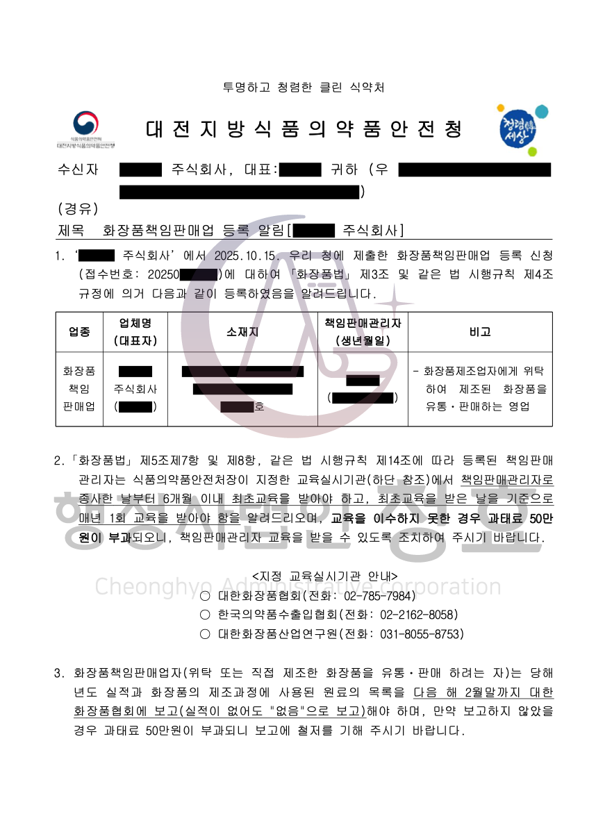 | 화장품 제조업·책임판매업 등록, 어디서 막히나요? 처음부터 끝까지 실무 핵심만 짚어드립니다 (1) | 2025.11.06 |