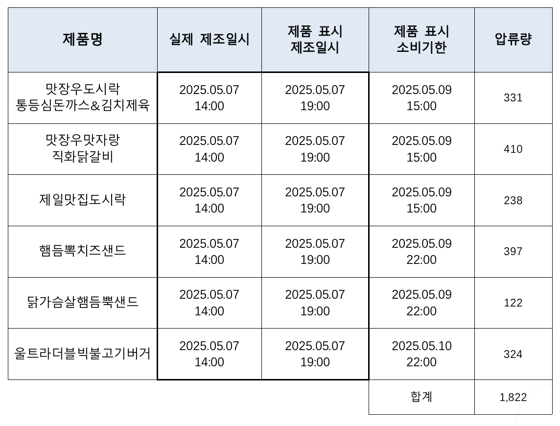 식품의약품안전처는 최근 전남 장성군에 위치한 (주)현대푸드시스템이 즉석섭취식품의 제조시간을 허위로 표시한 사실을 확인했습니다. 점검 결과, 해당 업체는 오후 2시에 생산된 도시락, 샌드위치, 햄버거의 제조시간을 오후 7시로 거짓 표시했습니다. 이는 소비기한과 직결된 중요한 정보로, 소비자가 신선도를 판단하는 데 혼란을 초래할 수 있습니다.