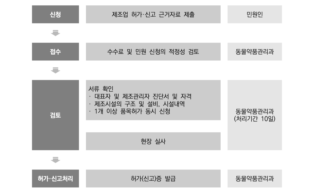 서류가 접수된 후, 동물약품관리과에서 서류의 적합성과 정당성을 검토하게 됩니다. 검토 내용으로는 제조 시설의 구조와 설비, 제조 관리자의 자격 및 진단서 등이 포함됩니다. 또한, 제조하고자 하는 동물용 의약품이 법령에서 정한 기준에 적합한지 여부도 중요한 검토 사항입니다.