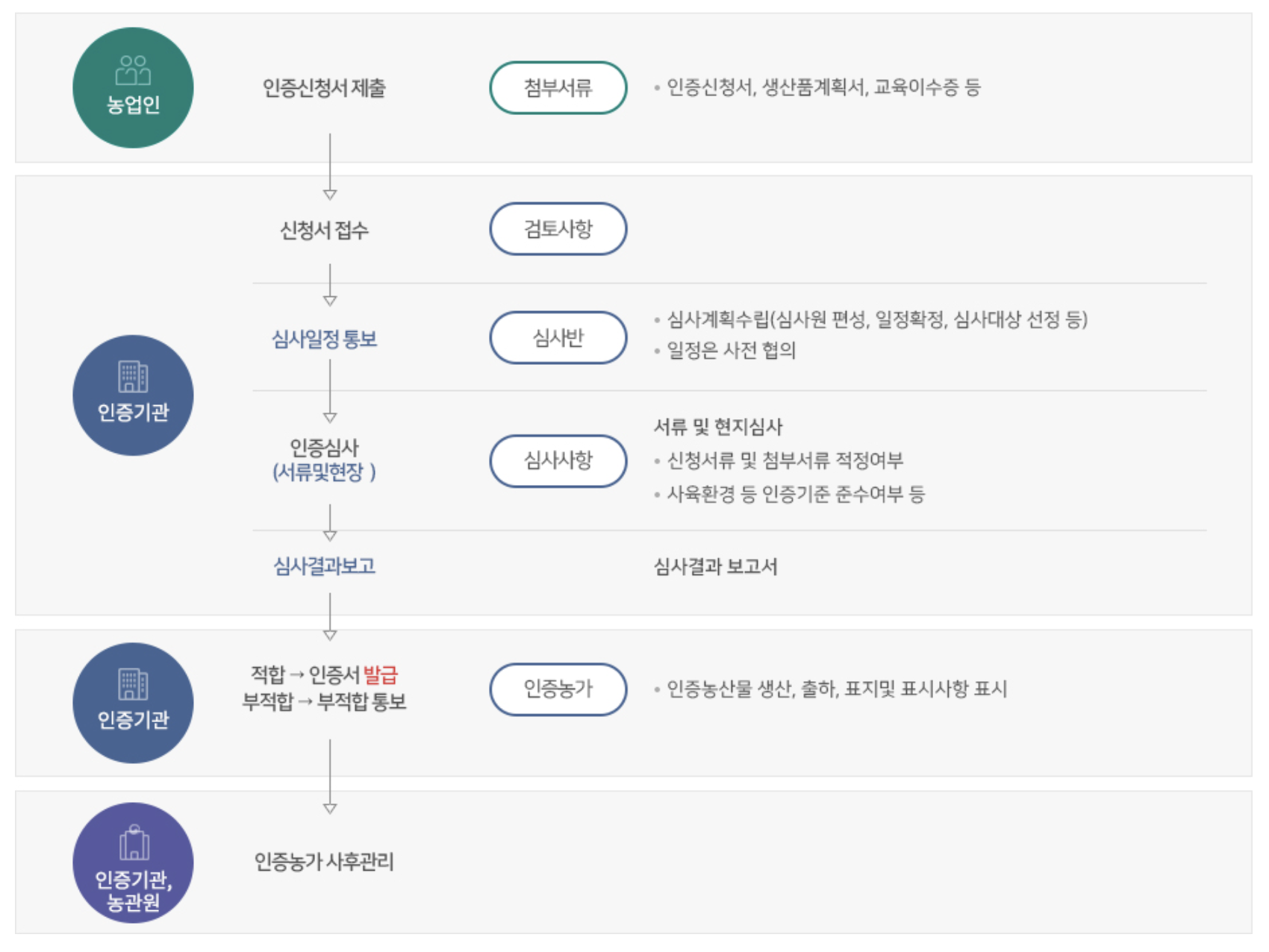 | 주식회사 농식품인증관리원 | 이광하 | 경기도 수원시 장안구 율전로 105 (율전동), 종욱빌딩 401호 | 031-298-6615 |