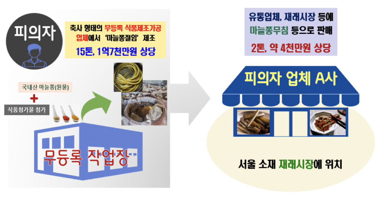 2024년 7월, 식약처는 경기도의 한 축사에서 비위생적인 방법으로 절임식품을 제조한다는 정보를 입수하고 조사를 시작했습니다. 수사 결과, A사 대표는 무허가 상태에서 약 15톤의 절임식품을 제조하여 이 중 2톤을 유통업체와 재래시장 등에 판매한 것으로 확인되었습니다. 이는 약 1억 7천만 원 상당의 규모로, 식품위생법 위반 혐의로 검찰에 송치되었습니다.