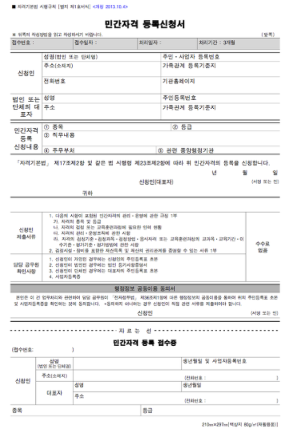 - 등록 신청서 작성: 자격기본법 시행규칙 별지 제1호 서식 사용