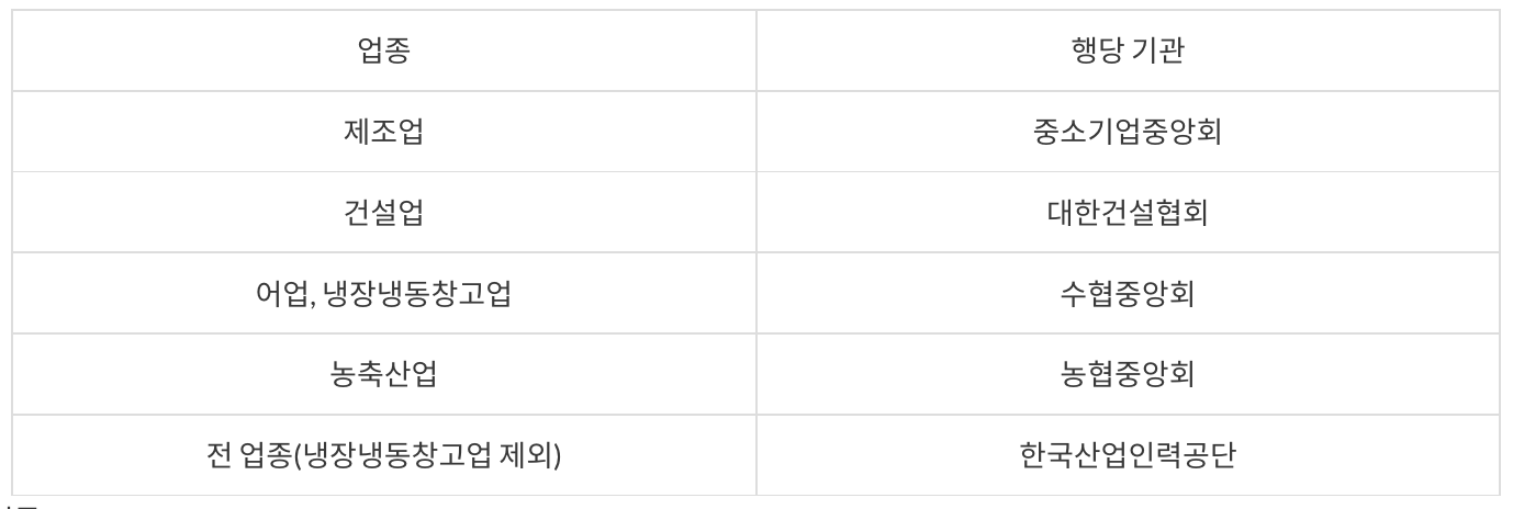 - 농축산업, 어업 또는 100인 미만의 제조업(뿌리산업의 경우에는 100인 미만까지 가능)에 근무할 것