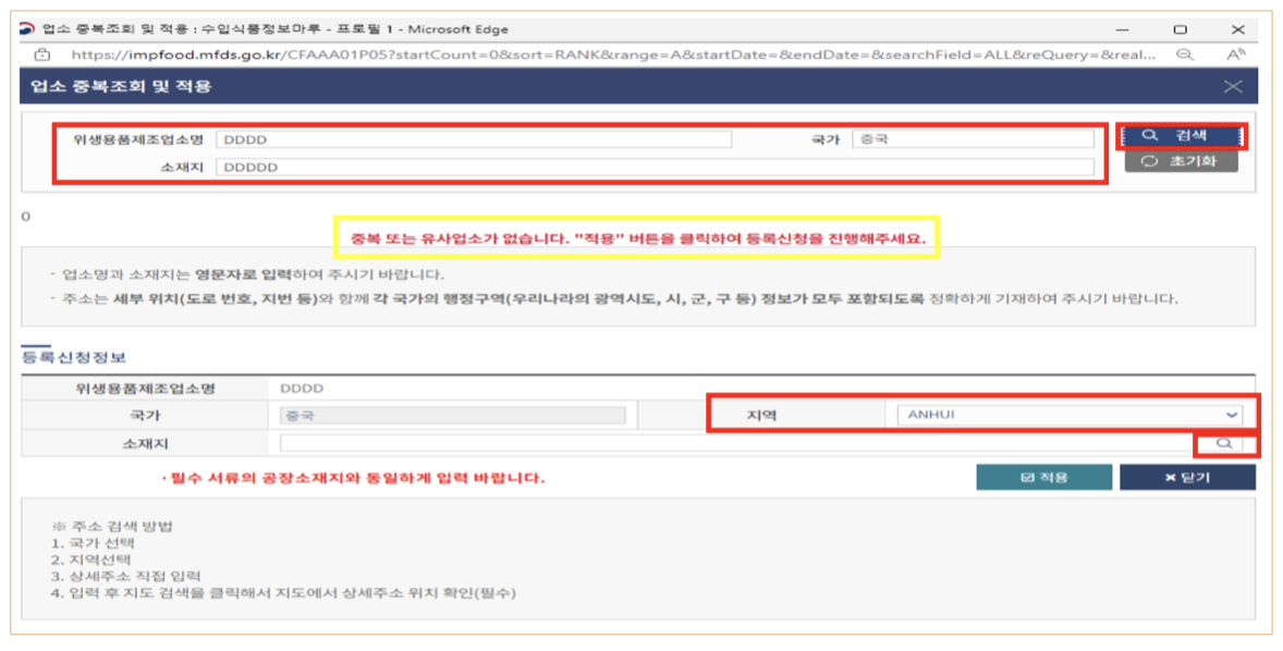 • 동일 주소, 동일 명칭이면 중복 등록 불필요