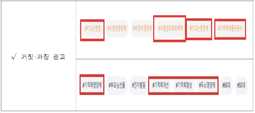 | 거짓·과장 광고 | 29건 | 64.4% | '기억력 개선(향상)' |