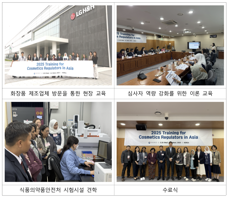 식품의약품안전처는 지난 5월 28일부터 6월 2일까지 베트남, 말레이시아, 인도네시아, 필리핀, 미얀마, 라오스 등 아시아 6개국의 화장품 규제기관 담당자 12명을 초청해, 한국의 선진 화장품 안전관리 체계를 전수하는 연수 프로그램을 성공적으로 마쳤습니다.