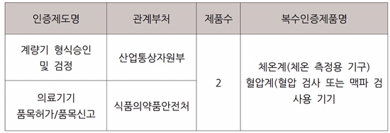 적용대상 및 복수의무인증 제품은 다음과 같습니다.
