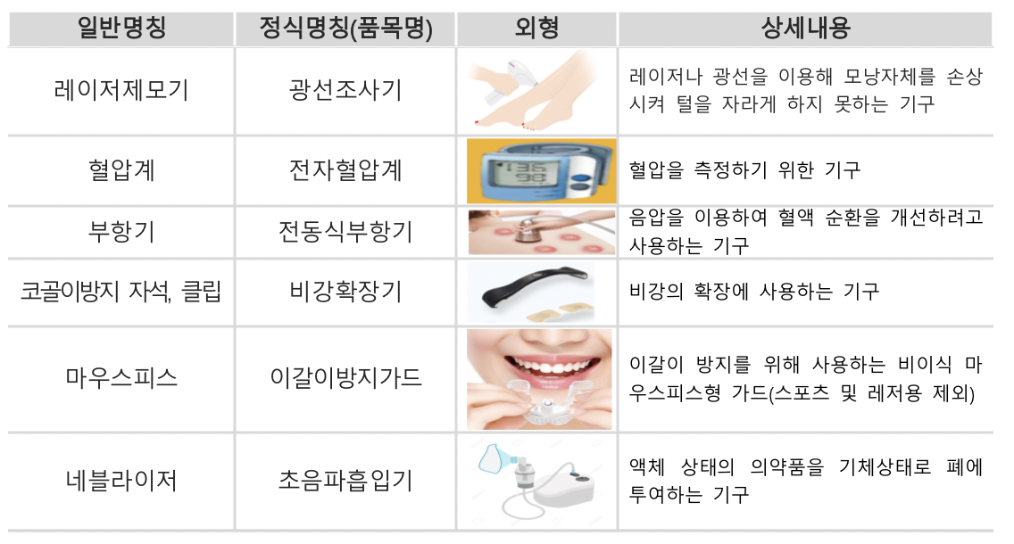 지난해 식약처가 온라인 플랫폼을 통해 적발한 대표적인 불법 의료기기 목록은 다음과 같습니다.