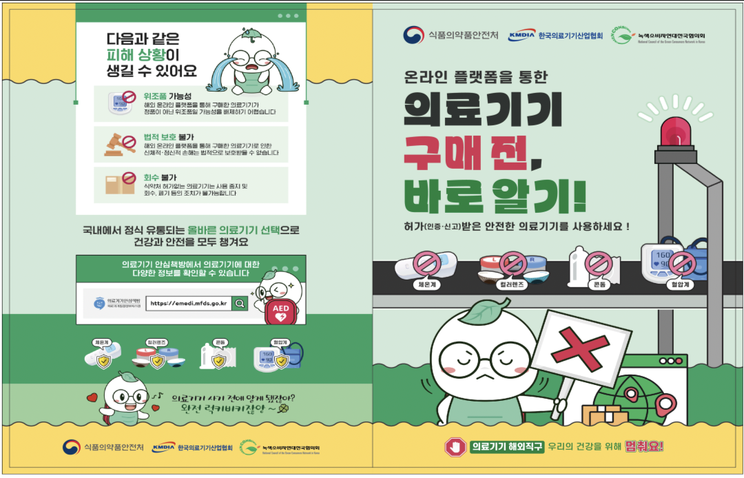 소비자가 의료기기를 온라인에서 구매할 때는 반드시 식약처로부터 허가, 인증, 신고된 제품인지 확인해야 합니다. 이를 위해 의료기기안심책방(https://emedi.mfds.go.kr)을 활용하면 허가 여부를 쉽게 검색할 수 있습니다.