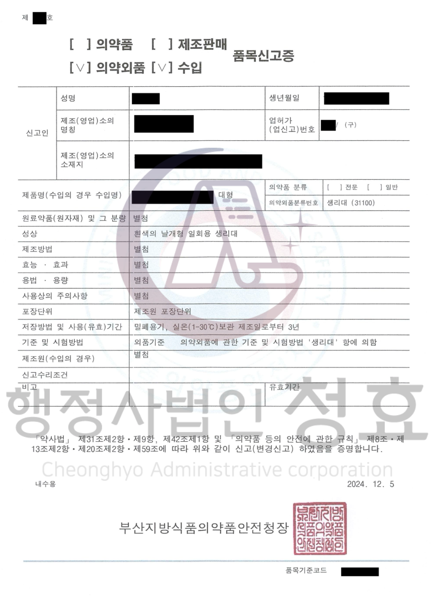 의약외품 생리대 수입 및 신고 과정은 엄격한 준비와 규정을 요구하며, 철저한 서류 준비와 시설 점검이 필수적입니다. 이 글을 통해 기업이 관련 규정을 준수하며 효율적으로 수입 절차를 완료하는 데 도움이 되었기를 바랍니다.