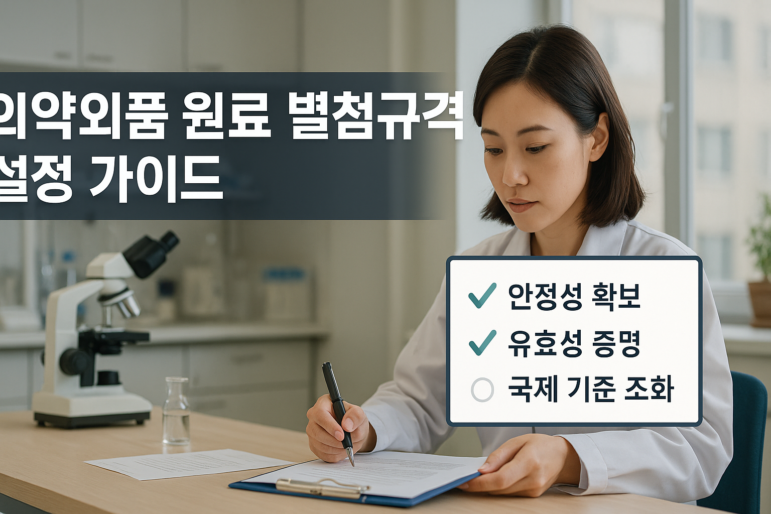 의약외품 원료의 별첨규격 설정은 제품의 안전성과 품질을 보장하기 위한 필수 절차입니다. 이는 소비자의 건강을 보호하고, 제품의 일관된 품질을 유지하는 핵심 과정입니다. 본 가이드는 「의약외품 품목허가·신고·심사 규정」 및 별표 5를 기준으로 별첨규격 설정 방법과 제출 자료 준비 절차를 체계적으로 설명합니다.