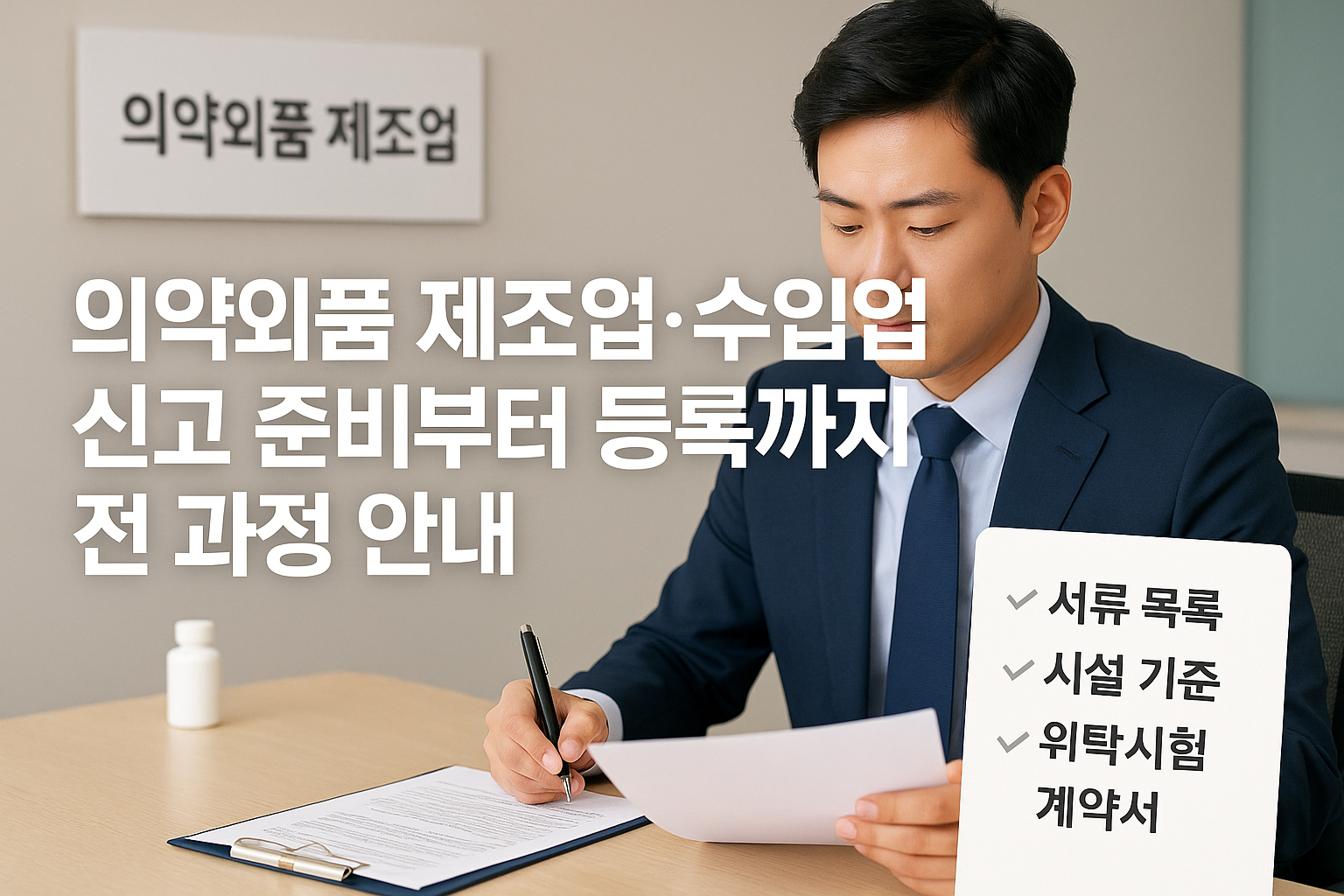 의약외품을 생산하거나 해외에서 들여와 국내에 유통하려면, 첫 단계로 반드시 ‘의약외품 제조업’ 또는 ‘수입업’ 신고를 마쳐야 합니다. 하지만 실무 현장에서는 신고에 필요한 시설 요건과 서류 준비, 위탁시험 계약 체결 등에 대해 막연하거나 잘못된 정보로 어려움을 겪는 경우가 많습니다.