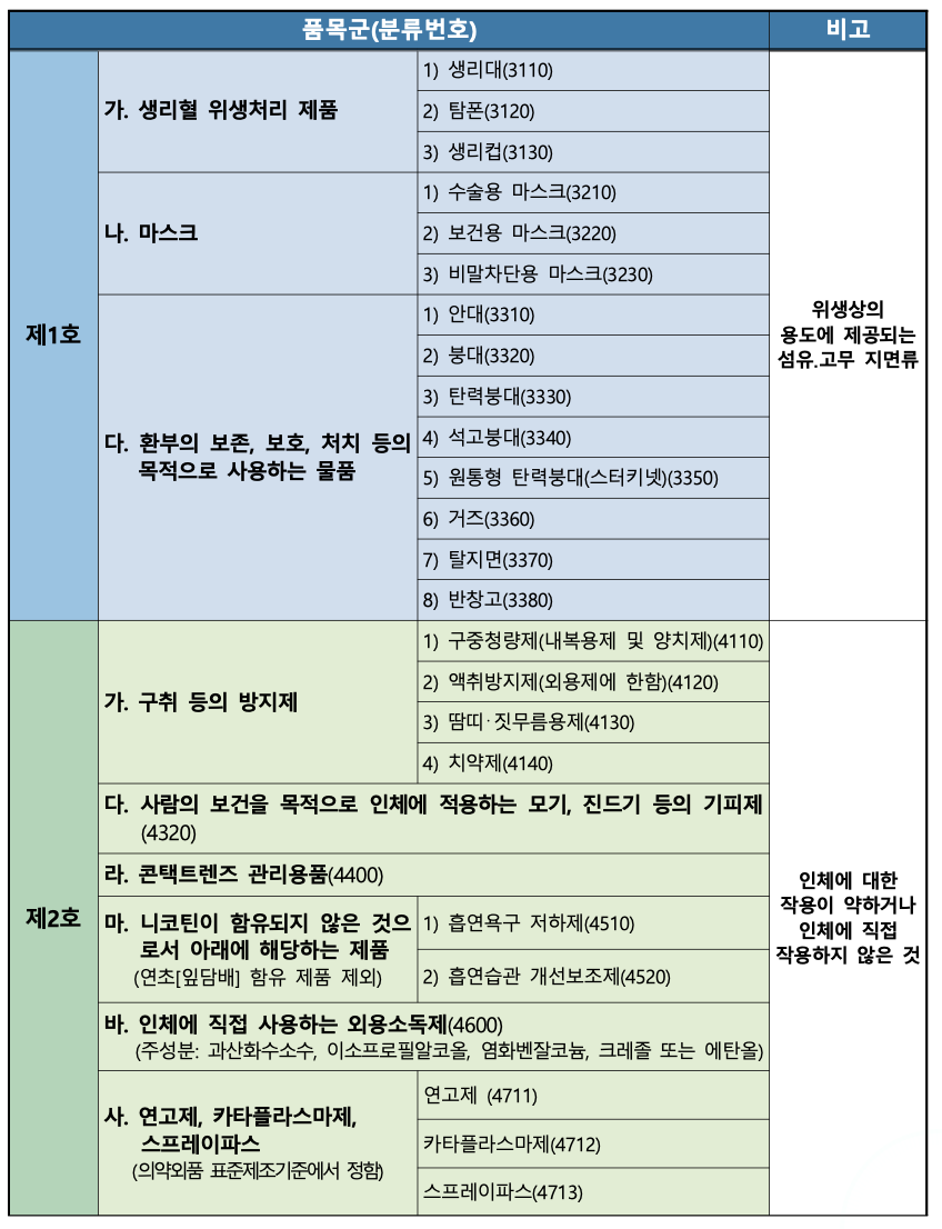 - 환경부로 이관된 품목: 2019년 1월 1일부터 방역용 살충제, 살서제 및 일부 살균소독제는 환경부로 관할이 이관되었습니다. 해당 품목은 의약외품으로 분류되지 않으므로, 별도 확인이 필요합니다.