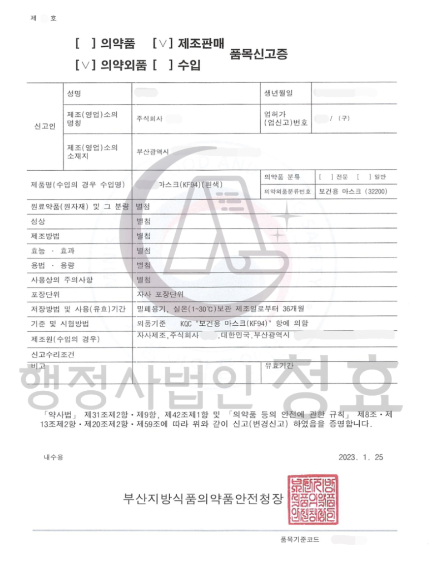 엑스퍼트: 의약외품 마스크 제조업 신고(공장 설계) 및 품목 허가 관련 다년간의 업무 경력을 바탕으로 전문 상담을 제공합니다. (약사법 제2조 제7호 가목, 나목에 해당하는 의약외...