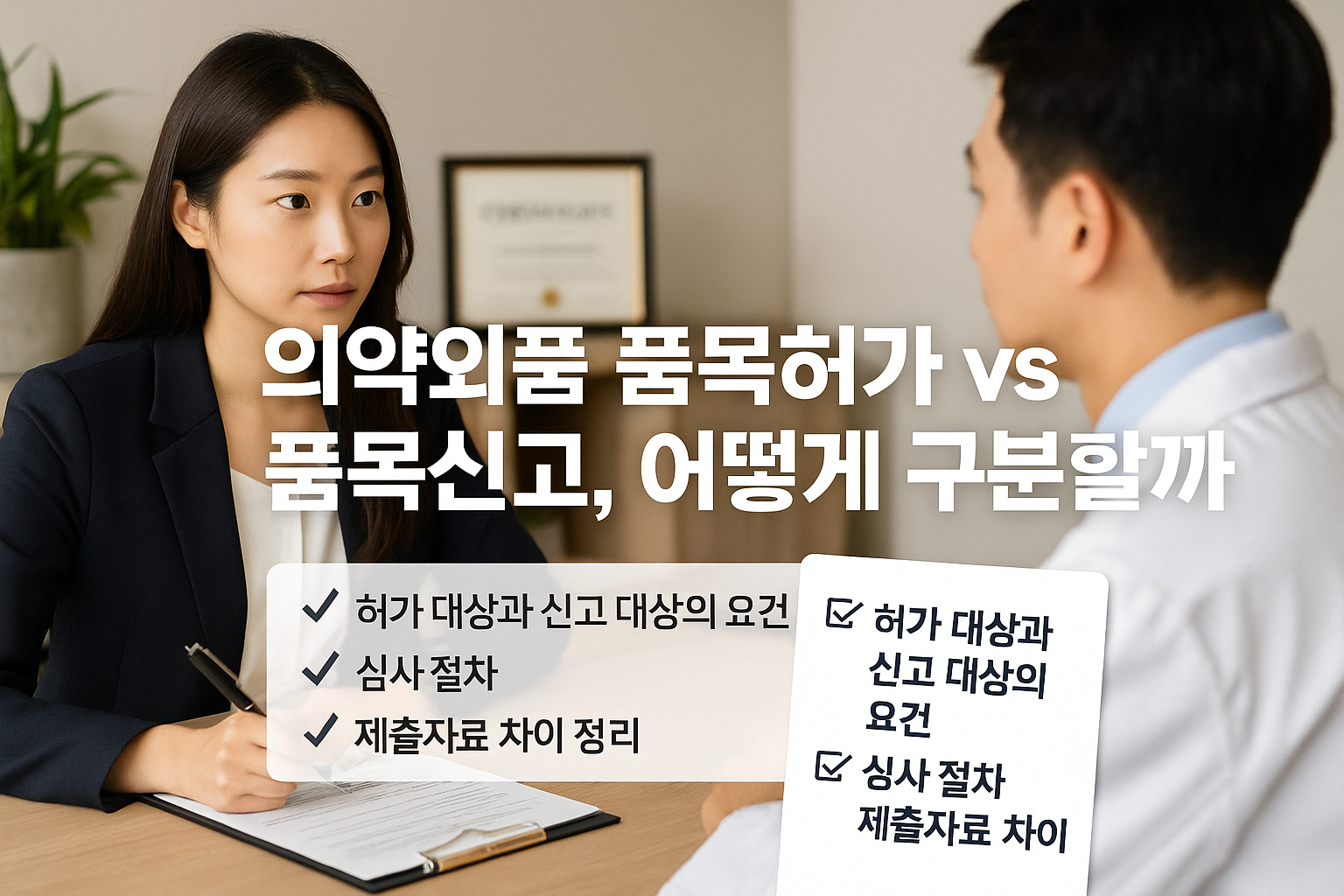 의약외품을 제조하거나 수입하여 판매하려는 기업이라면 반드시 거쳐야 하는 절차가 바로 ‘품목허가’ 또는 ‘품목신고’입니다. 하지만 두 절차는 적용 대상, 필요 서류, 처리 절차, 수수료 등에서 큰 차이를 보입니다. 이번 포스팅에서는 실무 담당자들이 자주 혼동하는 ‘의약외품 품목허가’와 ‘품목신고’의 차이를 정확히 짚어보겠습니다.