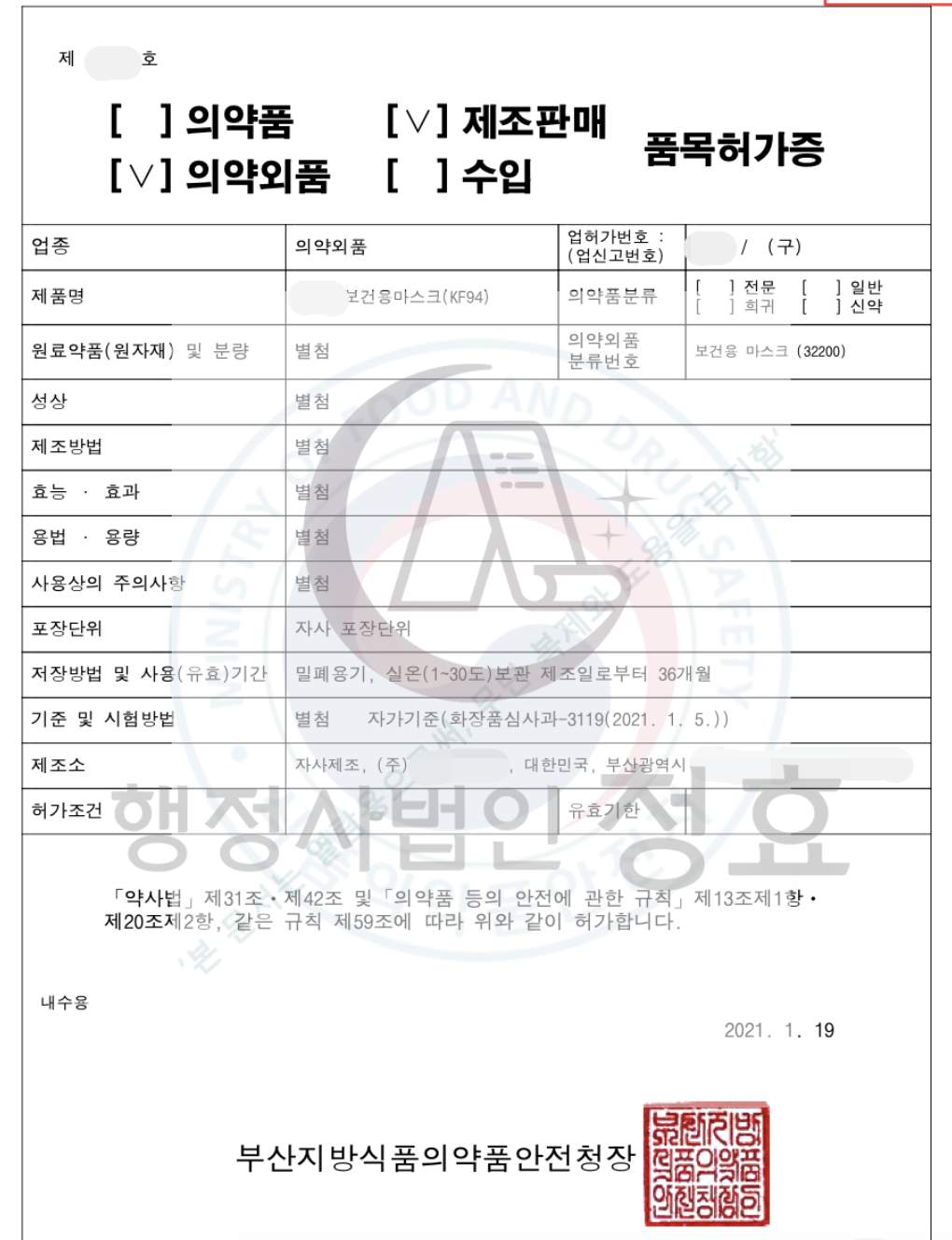 엑스퍼트: 의약외품 마스크 제조업 신고(공장 설계) 및 품목 허가 관련 다년간의 업무 경력을 바탕으로 전문 상담을 제공합니다. (약사법 제2조 제7호 가목, 나목에 해당하는 의약외...