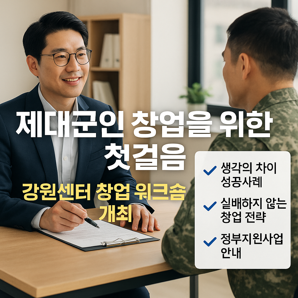 단순한 창업 교육을 넘어, 이번 워크숍은 ‘실패하지 않는 창업 전략’과 ‘정부지원 활용법’ 등 제대군인에게 꼭 필요한 정보만을 골라 실전 중심으로 제공합니다. 창업을 고민하는 단계부터 사업계획을 구체화하는 단계까지, 모든 제대군인에게 가치 있는 시간이 될 것입니다.