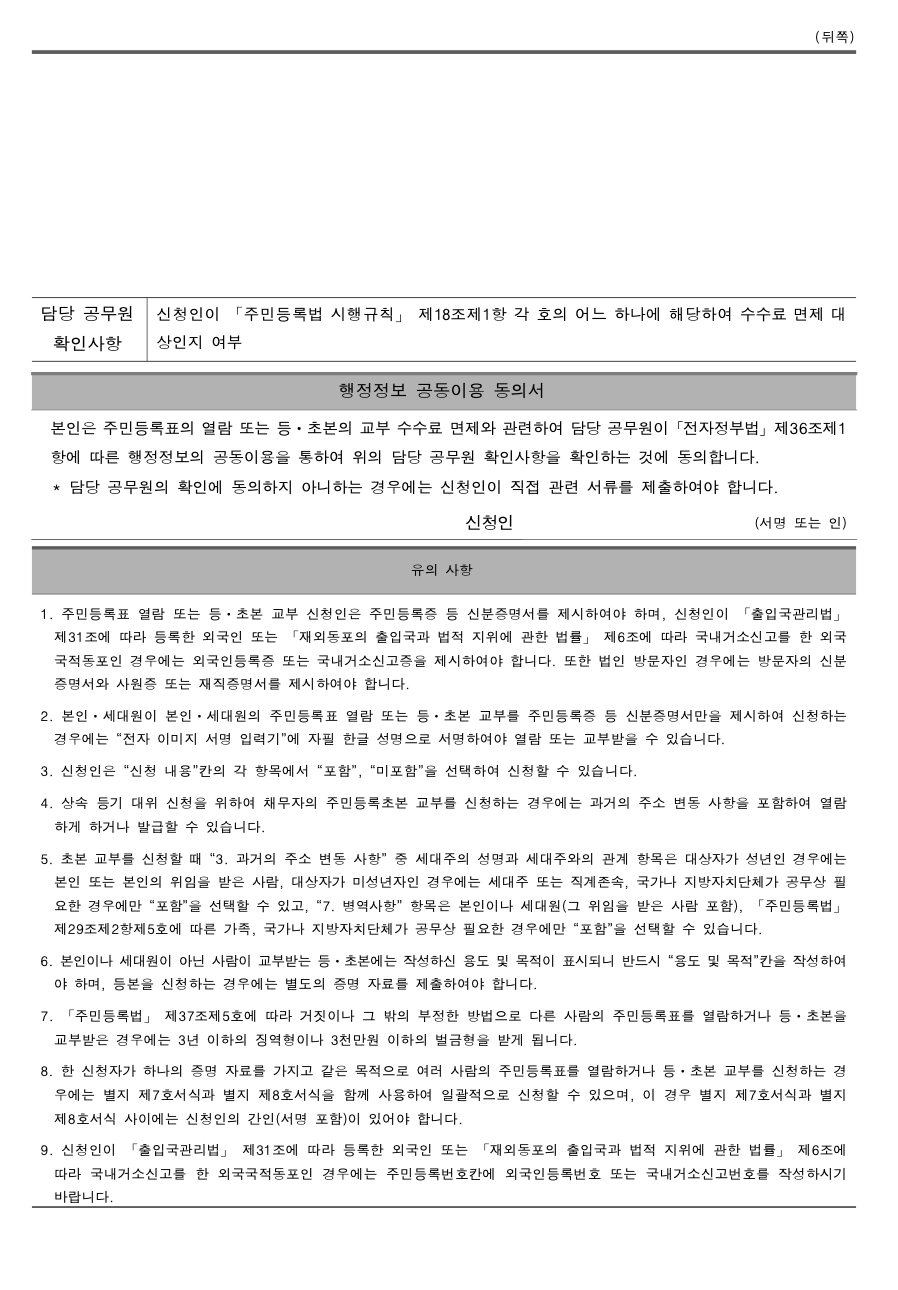 • [별지 제7호 서식] 주민등록표 열람 또는 등·초본 교부 신청서