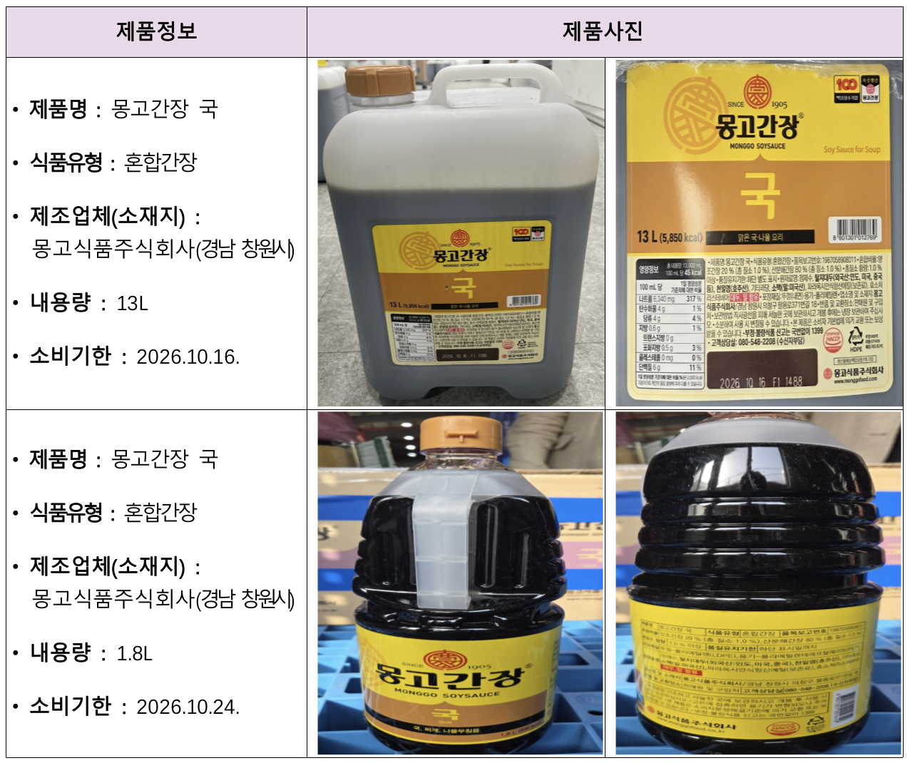 - 제품명: 몽고간장 국