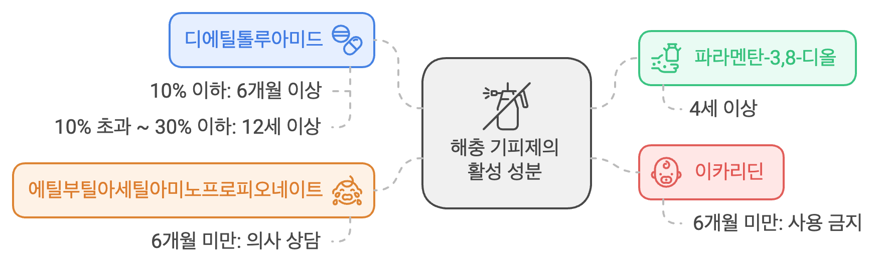 진드기기피제는 다양한 유효성분을 포함하고 있으며, 성분에 따라 사용 가능한 연령이 다릅니다. 따라서 제품을 선택할 때는 성분과 사용 가능 연령을 꼭 확인해야 합니다.
