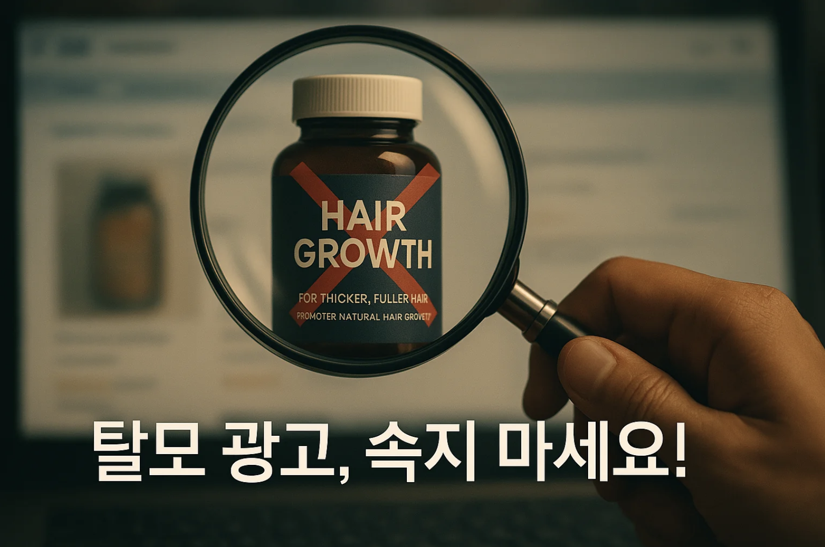 온라인에서 식품이나 건강기능식품을 구매할 때는 '탈모 예방', '발모 촉진' 등 검증되지 않은 의학적 효능·효과를 내세우는 광고에 주의해야 합니다. 특히 '후기' 형식으로 실제 효과가 있는 것처럼 꾸며진 광고에 현혹되지 않도록 각별한 주의가 필요합니다.