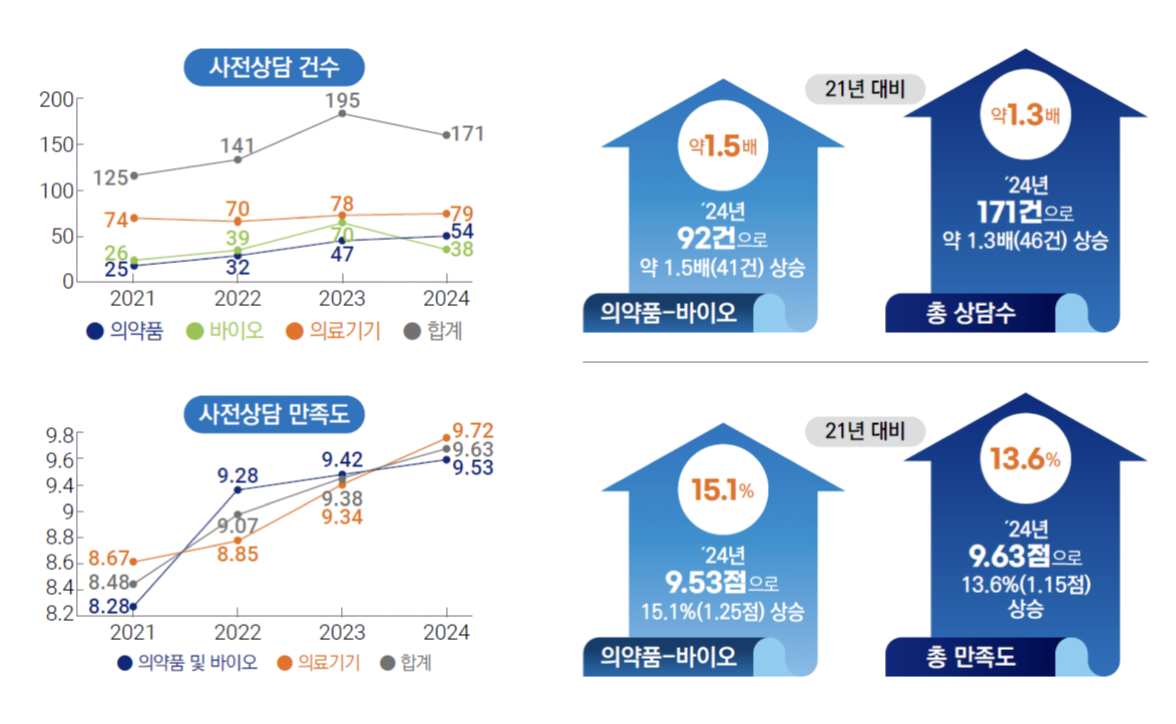 업계 반응 역시 긍정적입니다. 식약처는 분기별로 사전상담 만족도 조사를 진행하고 있는데, 만족도는 지속 상승 중입니다. 기업들은 사전상담을 통해 허가 요건을 조기에 파악하고 개발 전략을 세울 수 있었으며, 이는 자료 준비의 효율성과 제품화 성공률 향상으로 이어졌다고 평가했습니다.