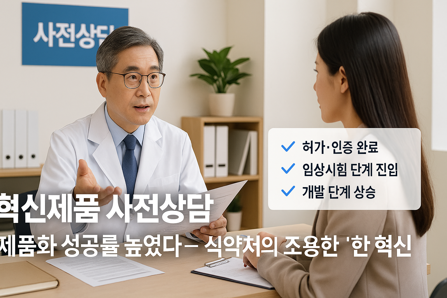국내에서 의료제품을 개발하는 기업이라면 누구나 한 번쯤은 이런 고민을 해봤을 것입니다. “이 신기술, 제품화 가능성은 있을까?” “허가까지 얼마나 걸릴까? 어디서부터 준비해야 하지?” 이처럼 초기 단계에서의 불확실성은 개발 속도를 늦추고, 자금과 인력의 낭비로 이어지기 쉽습니다. 이런 문제를 해결하기 위해 식품의약품안전처가 도입한 제도가 바로 혁신제품 사전상담입니다.