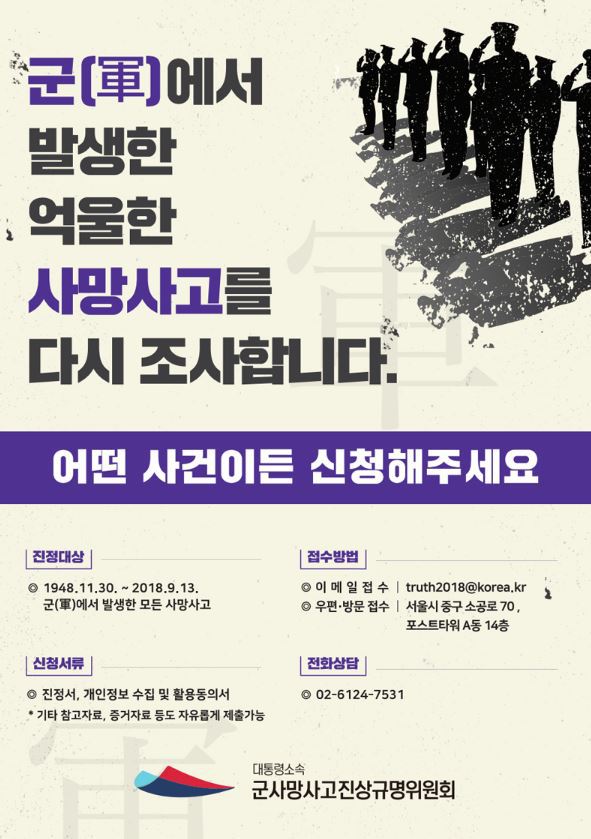 이러한 사고들을 재조사하여 유가족의 명예를 회복하고, 합당한 예우를 받울 수 있도록 하는 것이 위원회의 목적입니다.