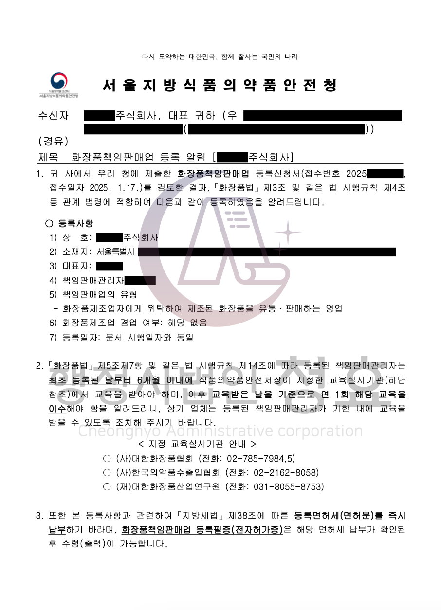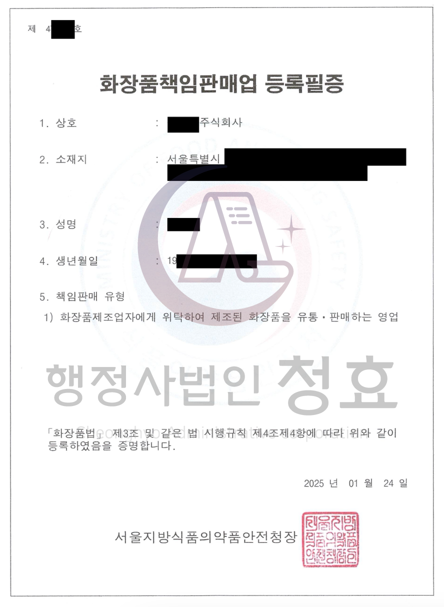 - 2025년 1월 17일: 화장품책임판매업 등록 접수