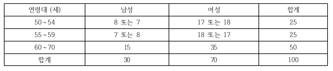 a) 선발된 성인의 수, 나이 및 성별