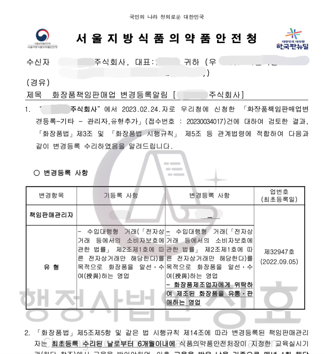 화장품 제조업 등록만으로는 제품 판매가 불가능하므로, 화장품 책임판매업 등록도 함께 진행해야 합니다. 이 과정은 상대적으로 간단하며, 대부분의 경우 화장품 제조업 등록 시 함께 준비하여 제출합니다.