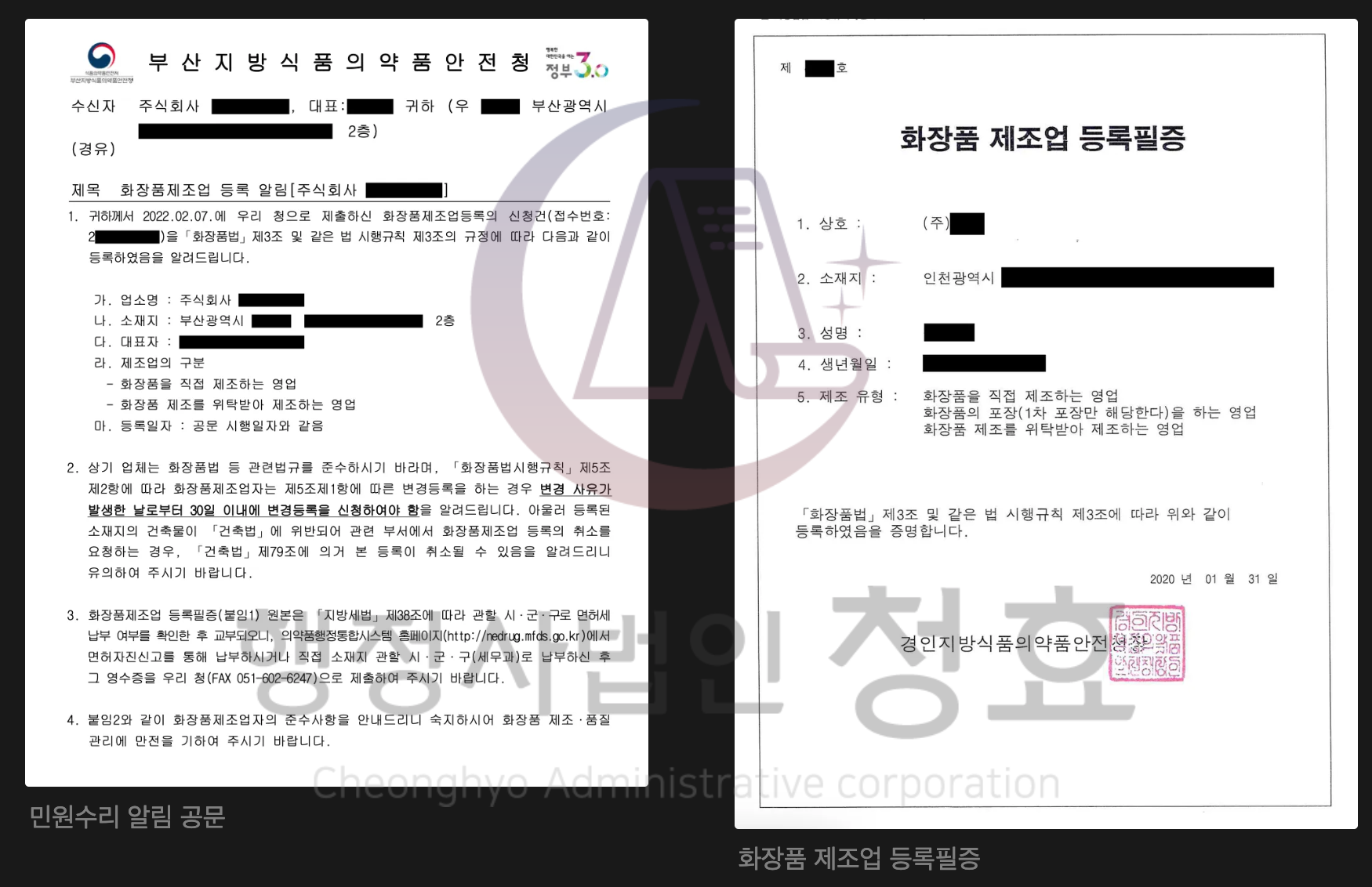 - 지방식약청에 화장품제조업 등록 신청서를 제출합니다.