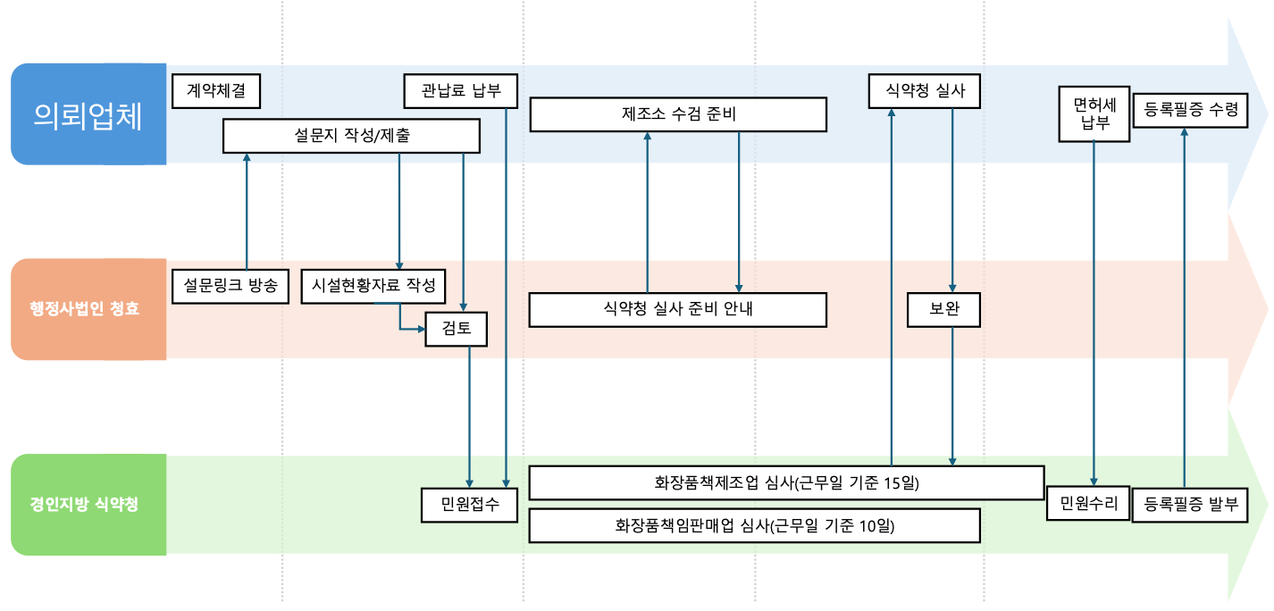 화장품 제조시설 기준에 맞게 시설을 설계하고 공사를 진행하는 동안, 동시에 제조업 등록과 책임판매업 등록 절차를 병행하면 등록 소요 시간을 현저히 줄일 수 있습니다.