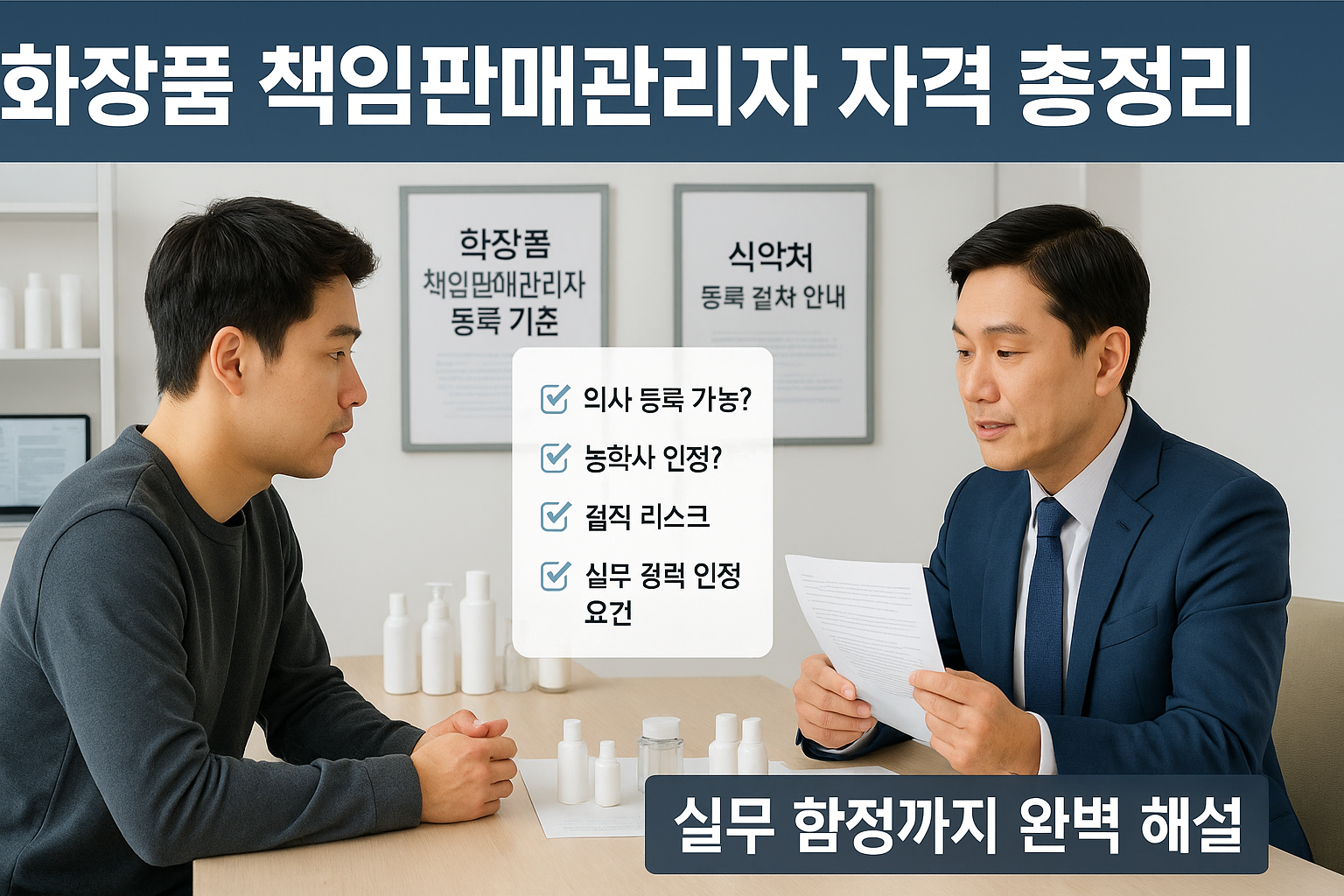 화장품법 시행규칙 제8조에 명시된 책임판매관리자의 자격은 다음 중 하나에 해당하면 충족됩니다. 단순히 법 조항만 보는 것이 아니라, 실제 등록 시 실무에서 요구되는 요소를 함께 고려해야 합니다.