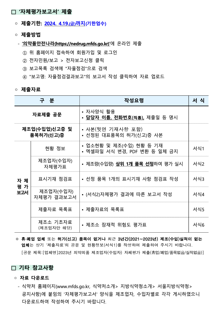 >> 서울지방식약청 기준 제출기한 4월 19일 금요일 까지