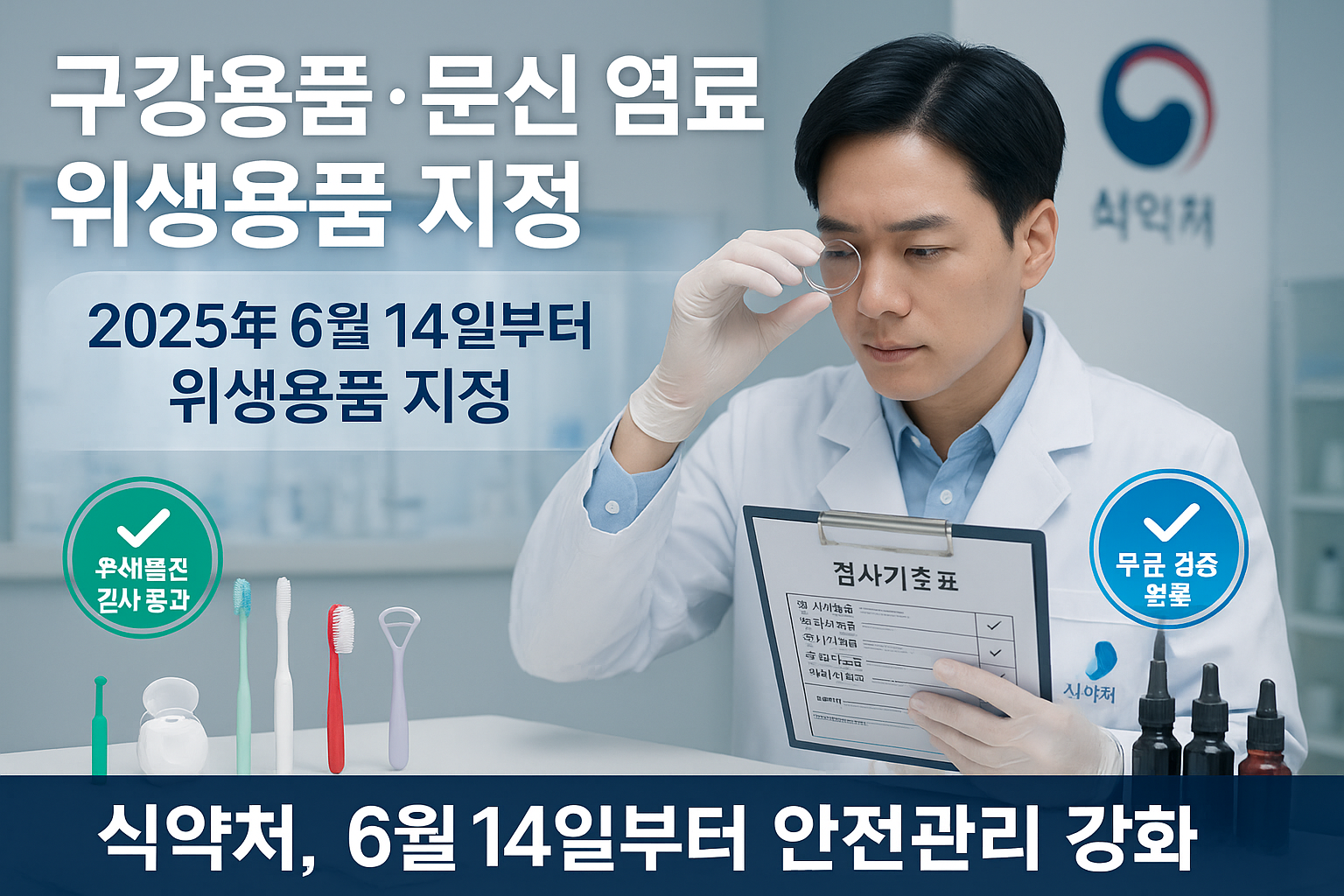 2025년 6월 14일부터 칫솔, 치실 등 구강관리용품과 문신용 염료가 ‘위생용품’으로 새롭게 지정되며, 제조 및 수입 절차가 대폭 강화됩니다. 이는 소비자의 안전을 확보하고, 증가하는 문신 수요에 대응하기 위한 조치로, 앞으로는 제품 생산 및 유통 전반에 걸쳐 더욱 철저한 위생 관리가 적용됩니다.