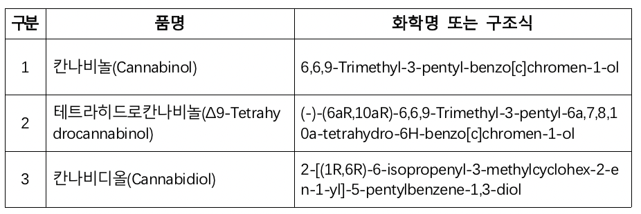 - CBD, THC, CBN 등 주요 칸나비노이드는 추출 부위나 제조 방식에 관계없이 대마로 간주