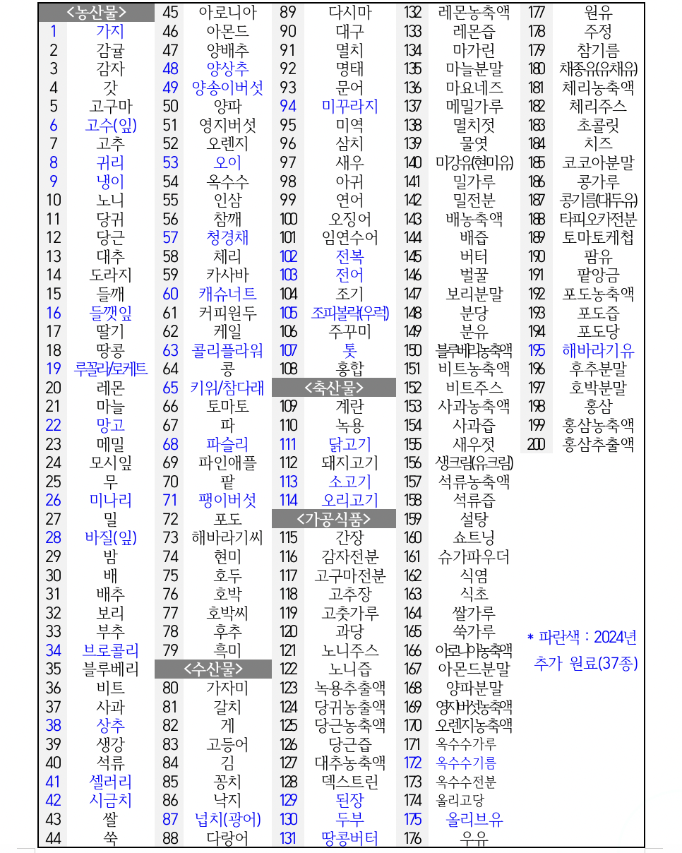 - 추가된 원료: 국내 부적합 사례가 빈번한 21종과 즉석조리·즉석섭취식품 관련 원료 16종 포함.
